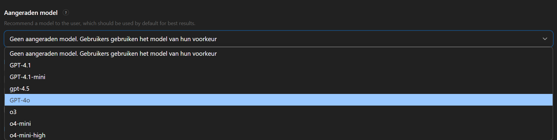 Sinds juni 2025 kun je bij het bouwen van een Custom GPT niet alleen de functionaliteit en kennis bepalen, maar Γ³Γ³k zelf kiezen op welk AI-model jouw bot draait. Dit is een grote stap vooruit, want hiermee kun je veel gerichter afstemmen op snelheid, kwaliteit, kosten en zelfs op privacy- of compliancewensen.