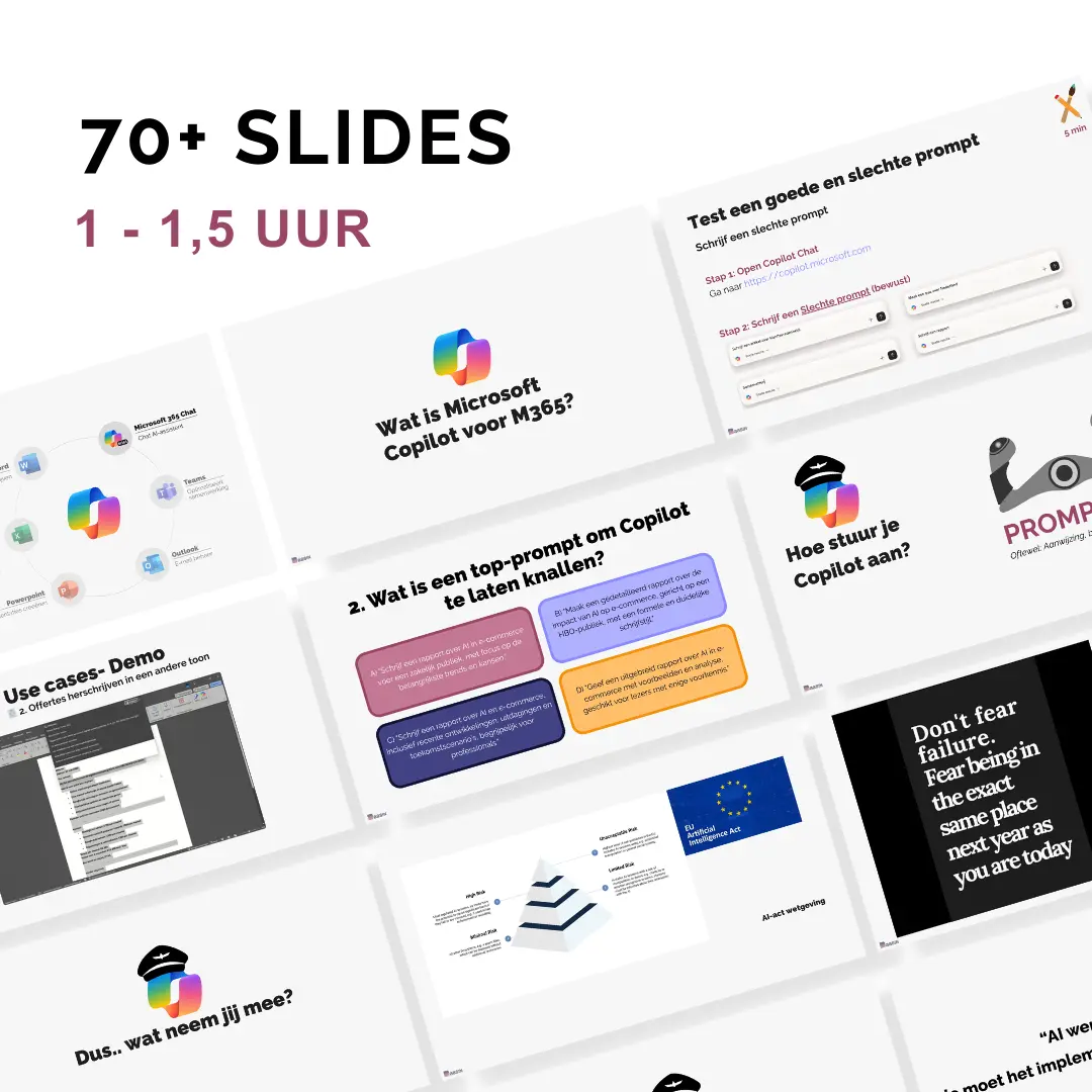 - Compleet Pakket: Een kant-en-klare presentatie (PowerPoint + Canva link) van 60 tot 90 minuten, inclusief oefeningen, quiz, praktijkdemo’s en een script per slide.